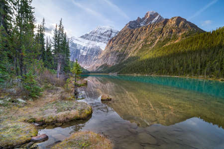 マウント エディス キャベルは ジャスパー国立公園 カナダでカヴェル湖に反映されます 日の出を撮影しました の写真素材 画像素材 Image
